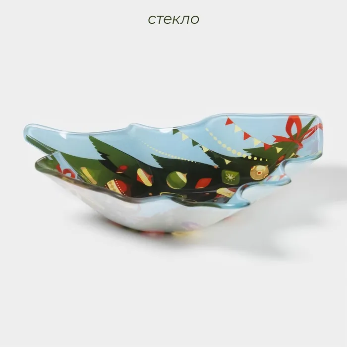 Блюдо новогоднее сервировочное Доляна «Ёлочка с подарками», 17.7×18.5×3.5 см, стекло — Характеристики