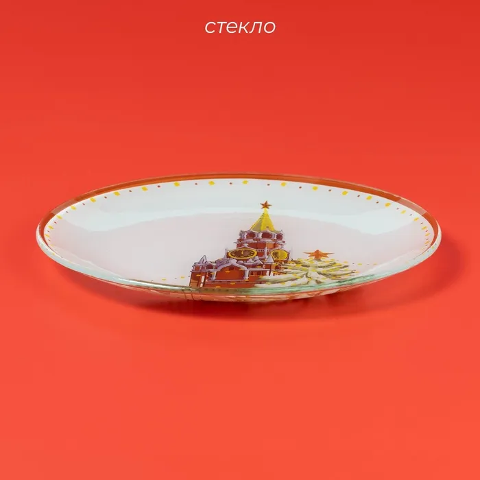 Блюдо новогоднее сервировочное Доляна «Московский мишка», d=19 см, стекло, цвет белый — Характеристики