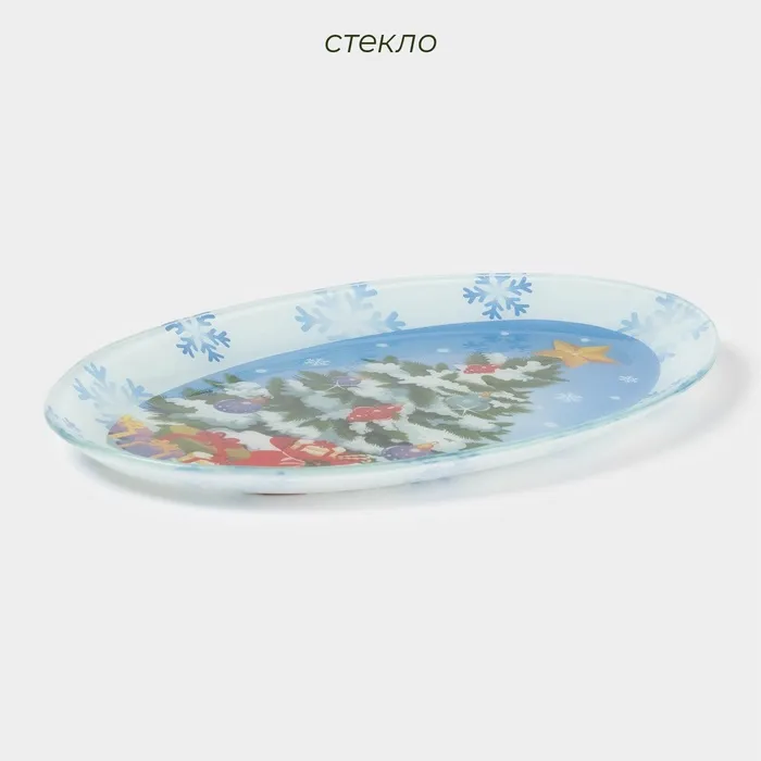 Блюдо новогоднее стеклянное овальное Доляна «Зимняя сказка», 30×21 см — Характеристики