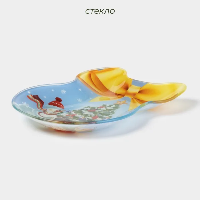 Блюдо новогоднее стеклянное сервировочное Доляна «Бант. Зимняя сказка», 19×14 см — Характеристики