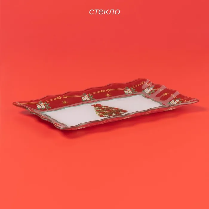 Блюдо прямоугольное Доляна «Новогодняя ель», 25×15 см, стекло, красное — Характеристики