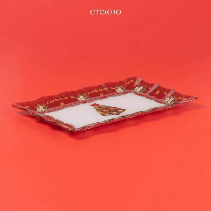 Блюдо прямоугольное Доляна «Новогодняя ель», 29.5×19.5 см, стекло, красное — Характеристики