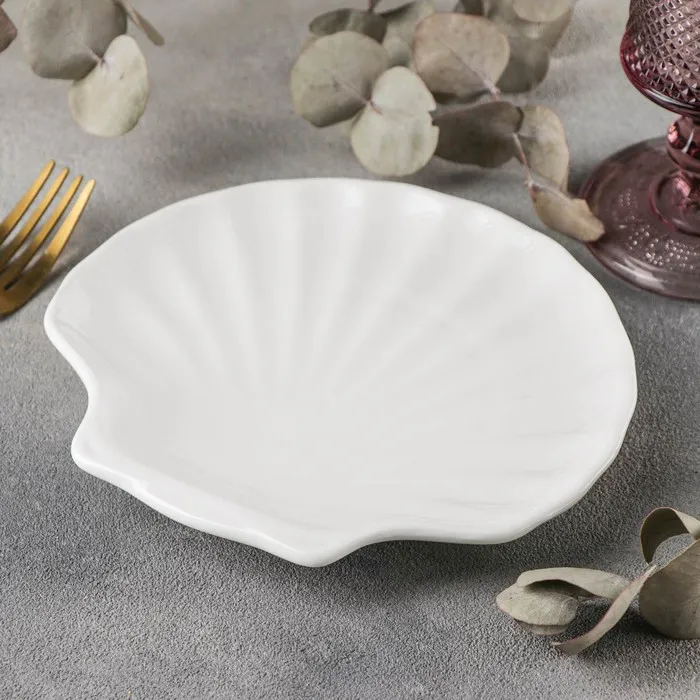 Блюдо-ракушка фарфоровое Wilmax Shelley, d=18 см, белое