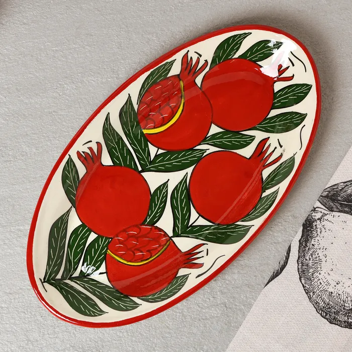 Блюдо Риштанская Керамика "Гранаты", 29,5 см, разноцветное, овальное — Характеристики