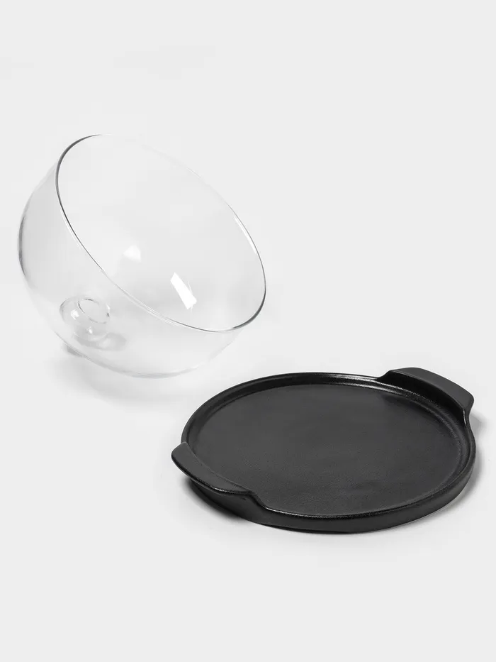 - Прозрачная стеклянная крышка-клош сохраняет свежесть десертов и позволяет демонстрировать их.