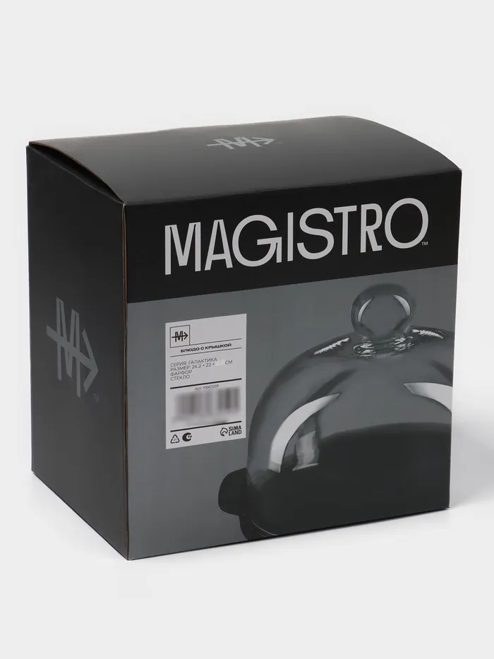Блюдо с крышкой-клош для десертов Magistro «Галактика», фарфор, d=22 см, чёрный — Характеристики