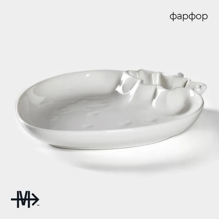 Блюдо с соусником Magistro «Клубника Бланш», 20×17 см, фарфор, белое — Характеристики