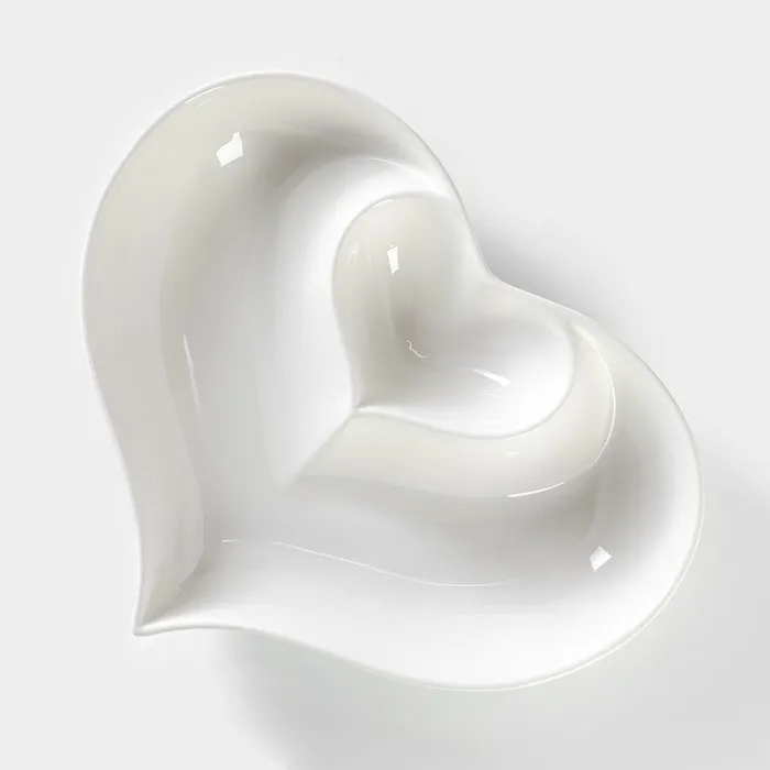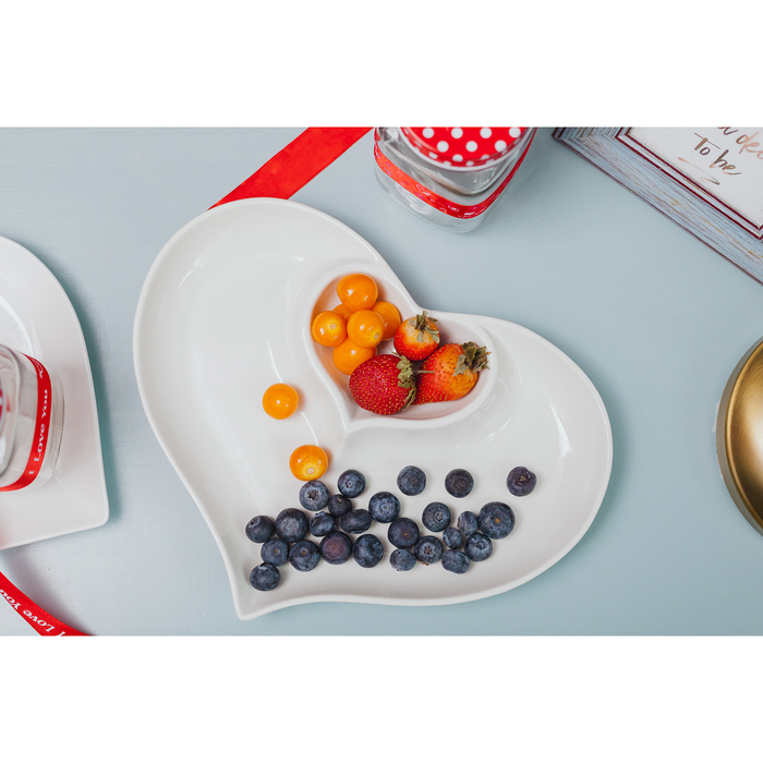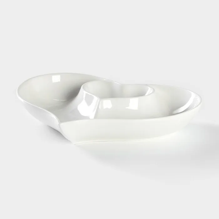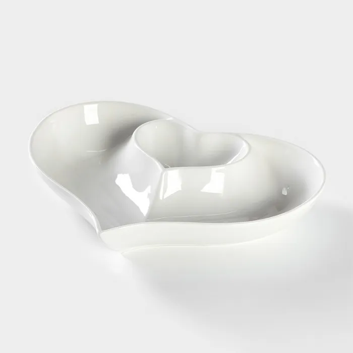 Блюдо с соусником «Сердце», 28×22×4 см, керамика, цвет белый — Характеристики
