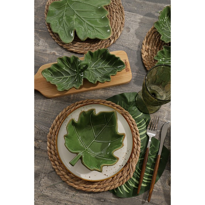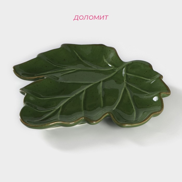 Блюдо сервировочное Доляна «Лист», 20.2×2.2 см, доломит, зелёное — Характеристики