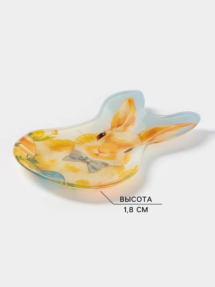 Блюдо сервировочное Доляна «Пасха. Кролик с бантиком», 21×13.5×1.8 см, стекло, разноцветное — Характеристики