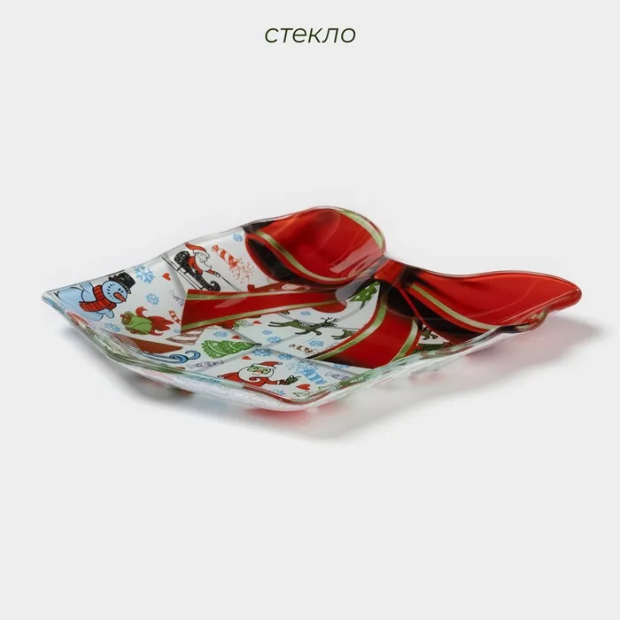Блюдо сервировочное Доляна «Подарок. С Новым Годом», 15.5×17.3 см, стекло — Характеристики