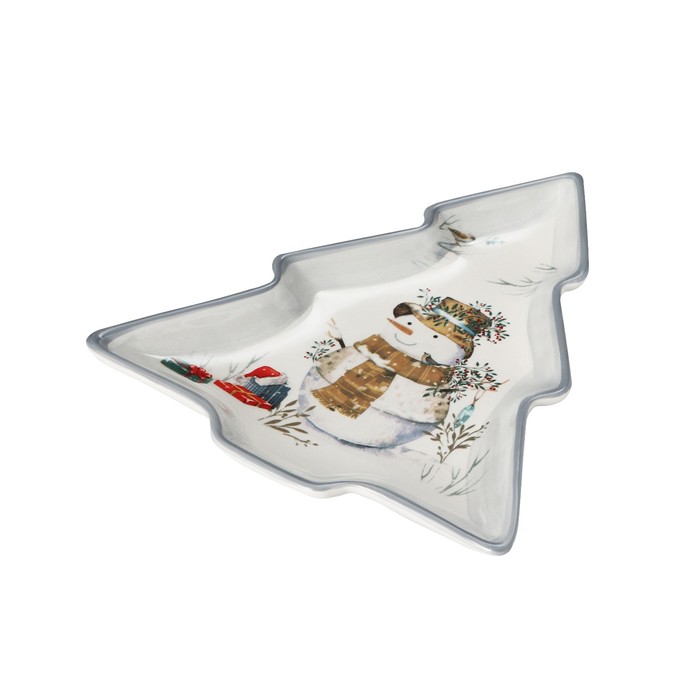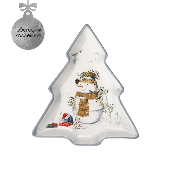 Блюдо сервировочное Доляна «Рождественский снеговик», 23×20×2,2 см, цвет белый — Характеристики