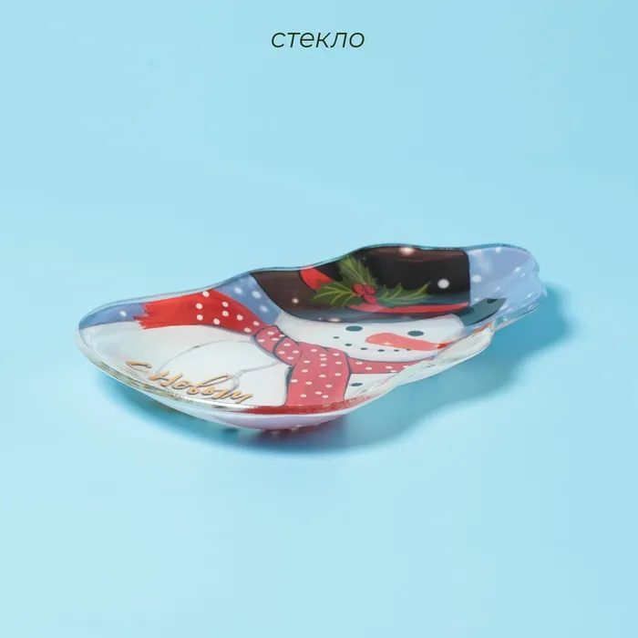 Блюдо сервировочное Доляна «Снеговик и воробей», 20.5×13 см, стекло — Характеристики