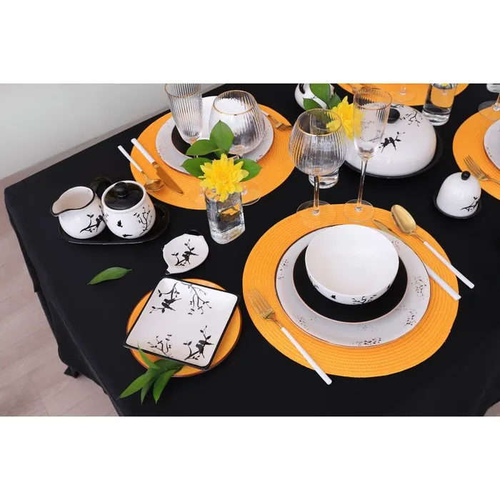 Посуда сервировочная Доляна «Весенний вечер» изготовлена из качественного доломита. Предметы выполнены в чёрно-белых тонах, поэтому они подойдут практически для любой сервировки разных стилей, а также с лёгкостью украсят интерьер вашей кухни.