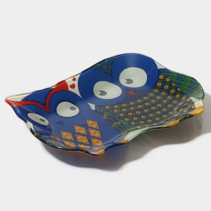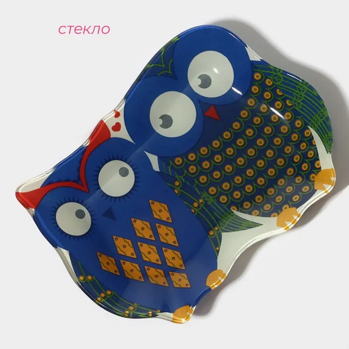 Блюдо сервировочное Доляна «Задумчивые совы», 18×13.1×1.9 см, стекло, синее — Характеристики
