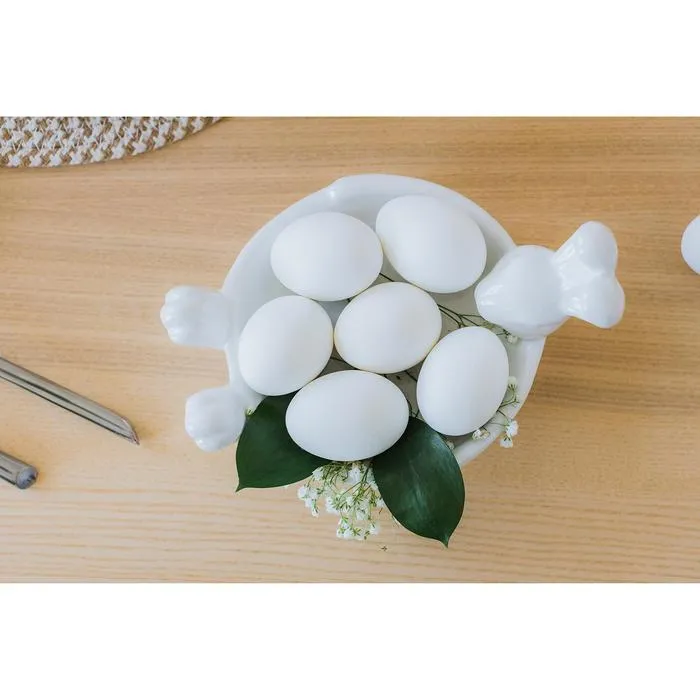 Белая тарелка с кроликом отлично подойдет под пирожные, закуски, орешки или для подачи фруктов. А как здорово на нем смотрятся пасхальный кулич или яйца! Посуда ручной работы всегда оригинальна. Оригинальное блюдо - отличная идея подарка на любой повод!