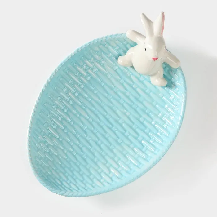Тарелка с кроликом отлично подойдет под пирожные, закуски, орешки или для подачи фруктов. А как здорово на нем смотрятся пасхальный кулич или яйца! Посуда ручной работы всегда оригинальна. Оригинальное блюдо - отличная идея подарка на любой повод!