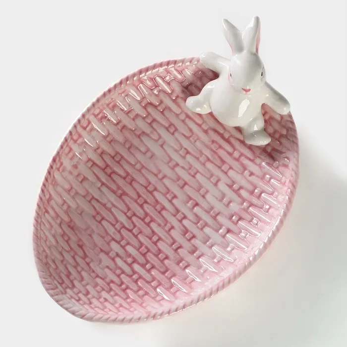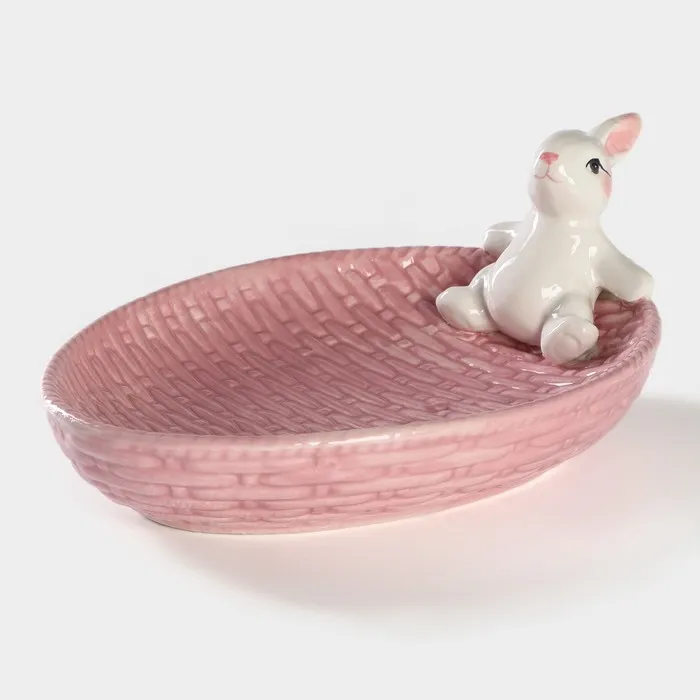 Тарелка с кроликом отлично подойдет под пирожные, закуски, орешки или для подачи фруктов. А как здорово на нем смотрятся пасхальный кулич или яйца! Посуда ручной работы всегда оригинальна. Оригинальное блюдо - отличная идея подарка на любой повод!