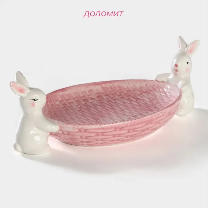 Блюдо сервировочное Доляна «Зайка», 30×16.5×10 см, розовый — Характеристики