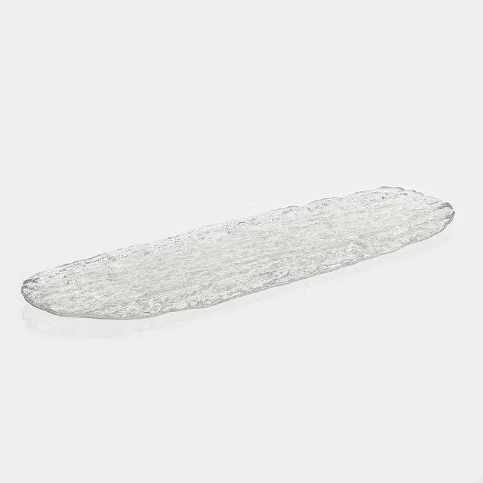 Это большое сервировочное блюдо размерами 48,5 x 16,5 см из прозрачного стекла — идеальный вариант для эффектной подачи блюд на любом столе. Его размер и форма прекрасно подходят для фуршетов, праздничных ужинов и больших семейных собраний. Прозрачность стекла подчеркивает красоту блюда.