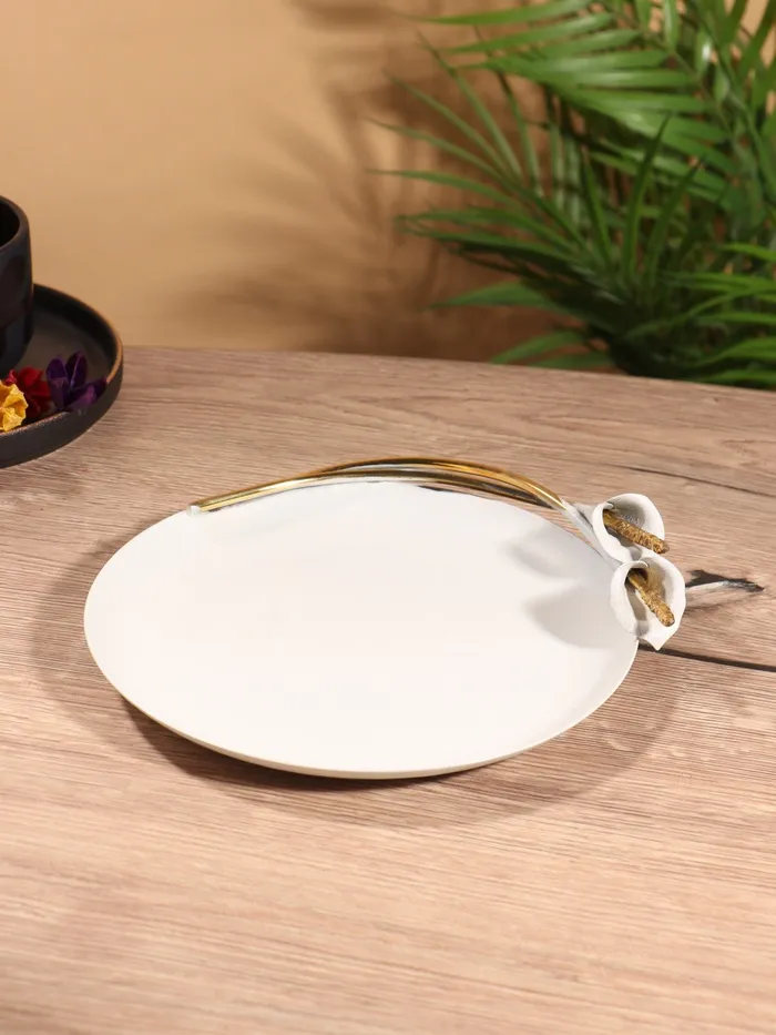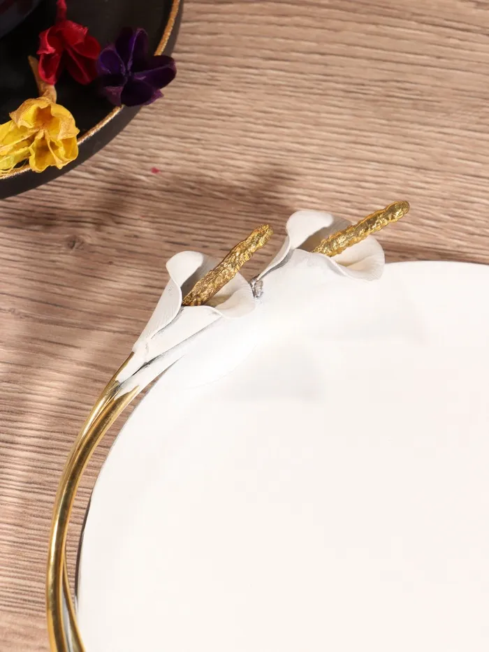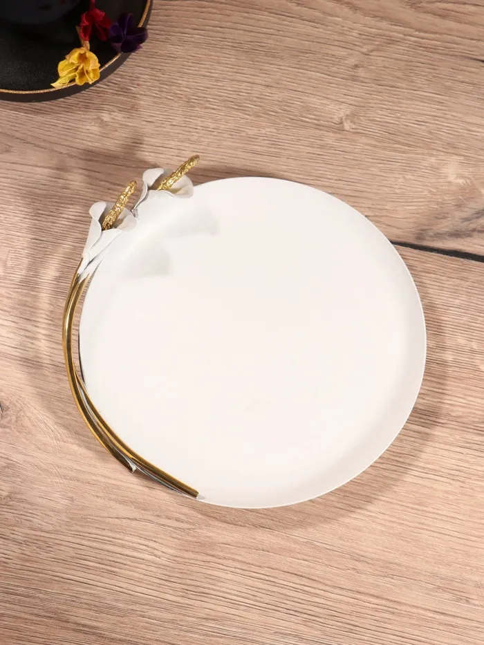 Блюдо сервировочное круглое "Белые каллы" белое с золотом. нержавеющая сталь 21х21,5х4 см — Характеристики