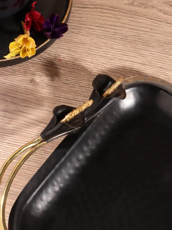Блюдо сервировочное квадратное "Черные каллы" черное с золотом. нержав сталь 22х24х4 см — Характеристики