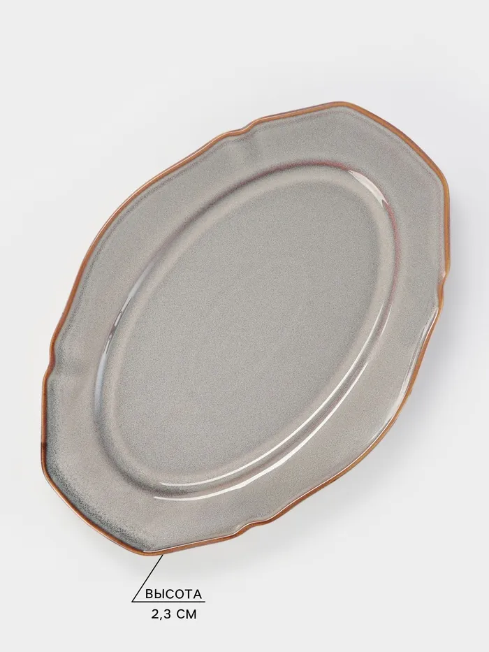 Это сервировочное блюдо станет стильным дополнением вашего стола. Его размеры 31×21,5 см и овальная форма делают его удобным для подачи различных блюд. Изготовленное из высококачественного фарфора, оно обладает гладкой текстурой и серым цветом, что придает ему современный и элегантный вид.