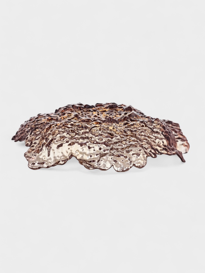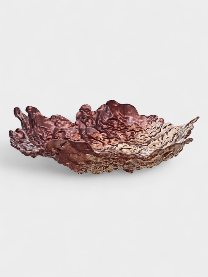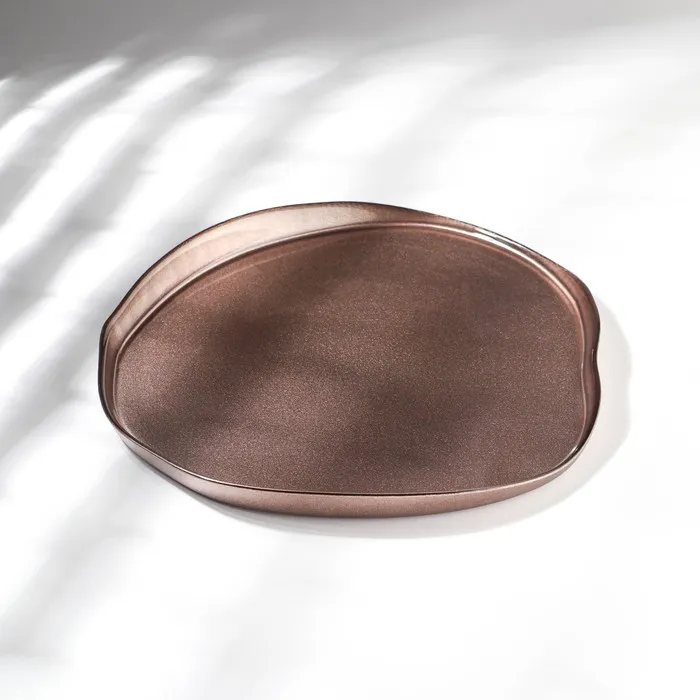 - Бронзовое стекло с градиентом: оттенок играет на свету, меняясь в зависимости от угла обзора. Градиент добавляет глубины, делая блюдо заметным даже без дополнительного декора.