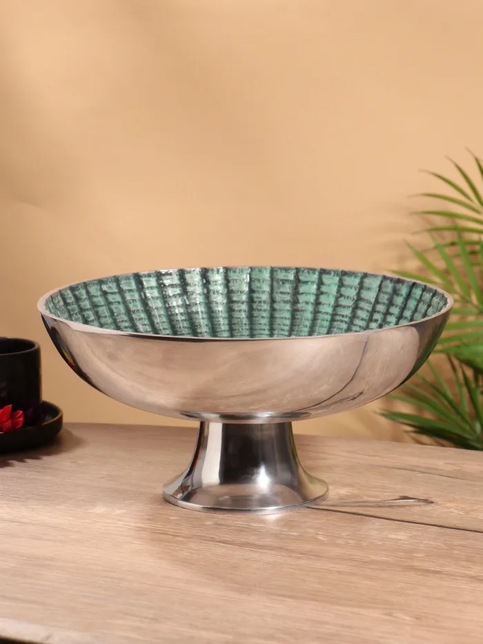 Блюдо сервировочное на ножке 30х30х15 см, алюминий, цв. голубой — Характеристики