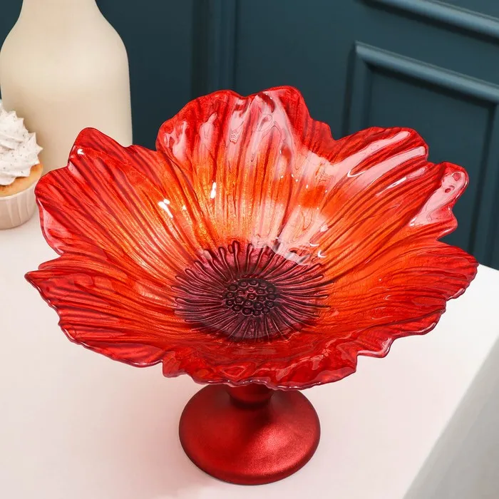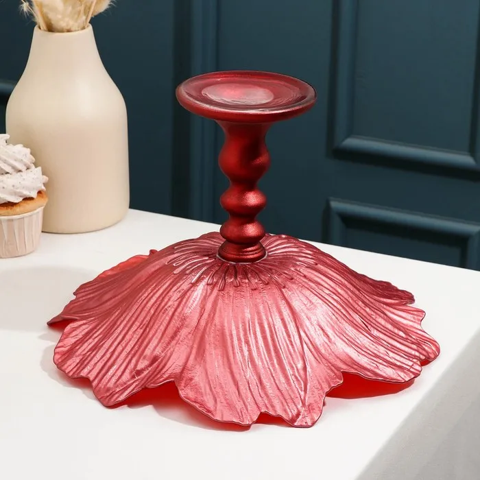 Блюдо сервировочное на ножке «Маки», d=30 см, цвет красный — Характеристики