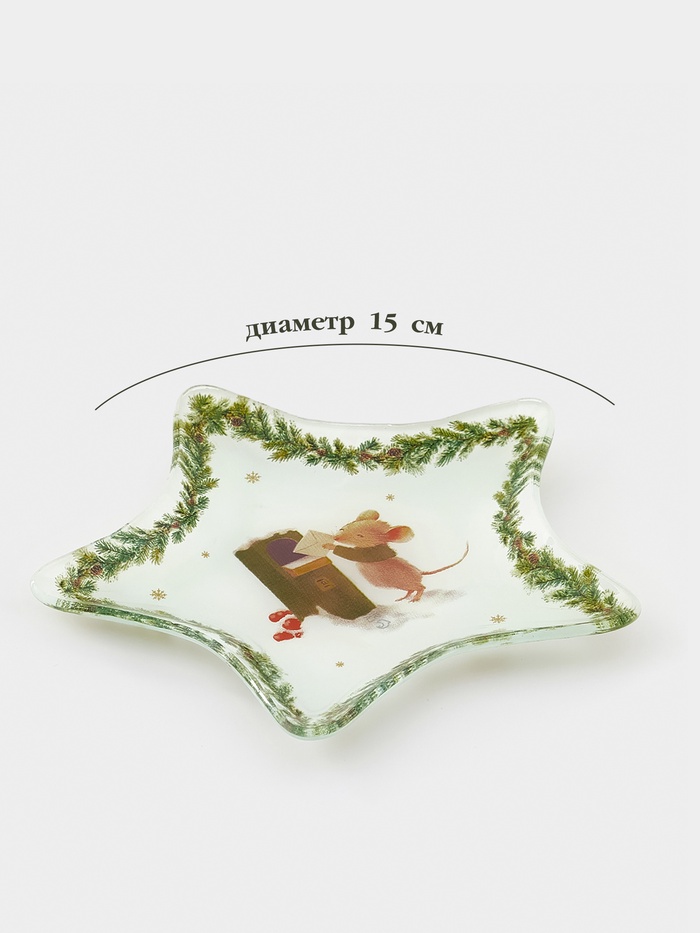 - Новогодняя тематика: рисунок выполнен в универсальной новогодней тематике. Декор не привязан к символу года, поэтому блюдо остаётся актуальным из года в год.