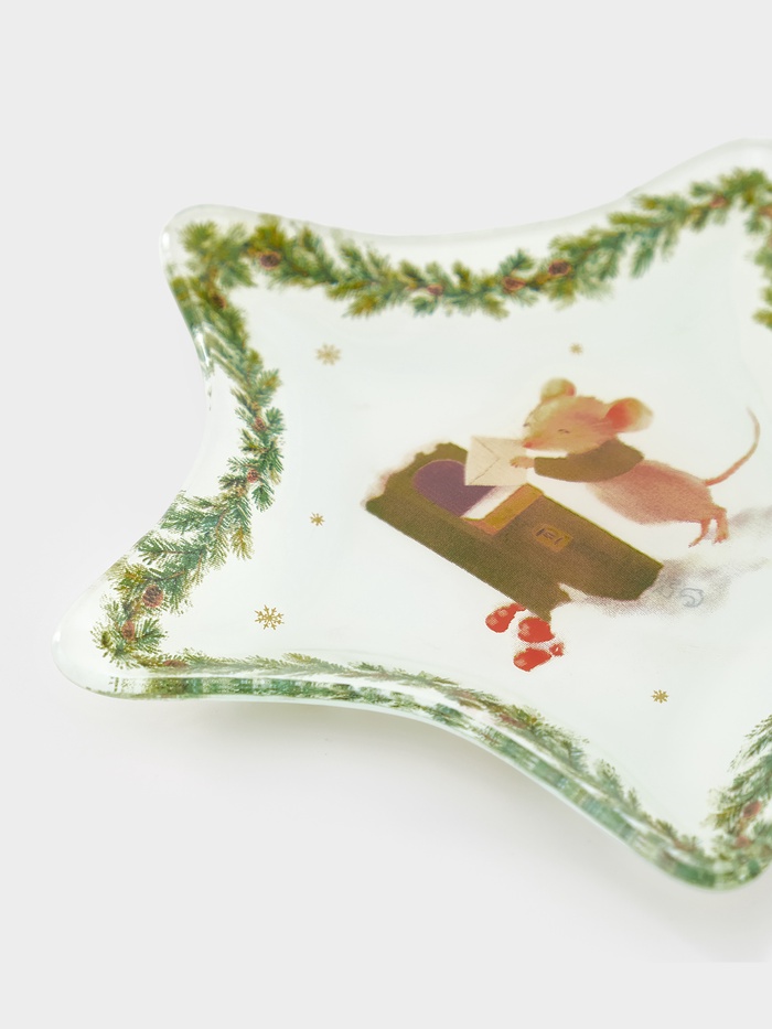 Пусть даже маленькое блюдо расскажет новогоднюю сказку! Сервировочное блюдо в форме звезды, украшенное бело-зелёным рисунком с зимними животными. Оно создано как для повседневного использования, так и для того, чтобы добавить уюта и праздника даже самой скромной закуске.