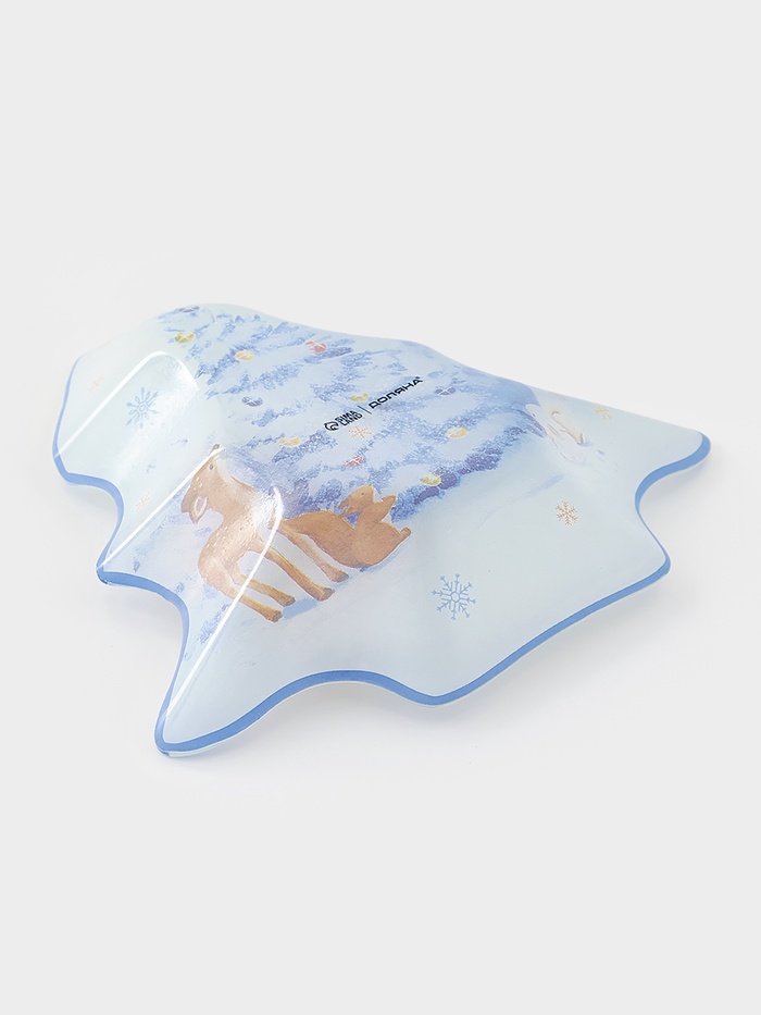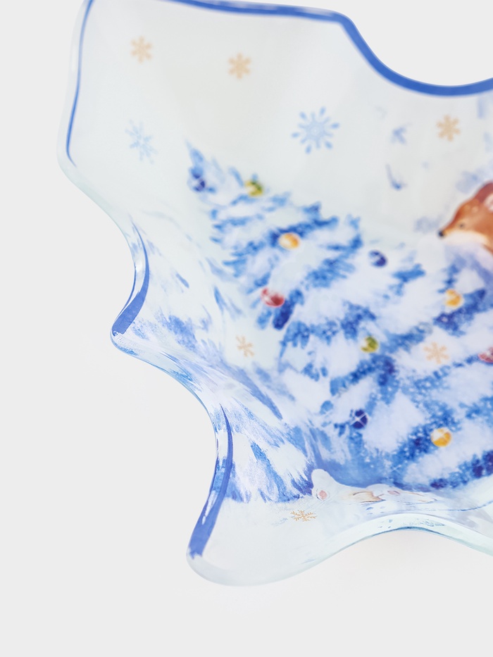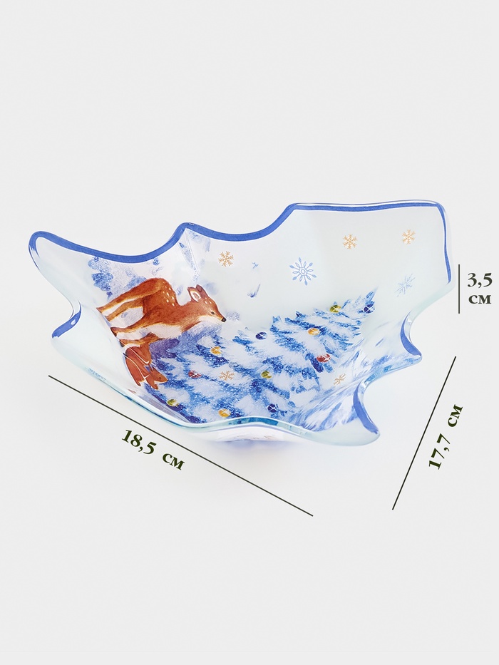 Блюдо сервировочное новогоднее Доляна «Новый Год в лесу», 17.7×18.5×3.5 см, стекло, белое, голубое — Характеристики