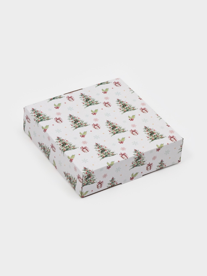 - Новогодний рисунок: узор включает ёлочки, снежинки и лесные мотивы — универсальные символы зимы. Блюдо подойдёт для использования из года в год, не теряя актуальности.