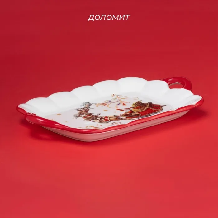 Блюдо сервировочное новогодняя Доляна «Сани Деда Мороза», 23×14 см, доломит, белое — Характеристики