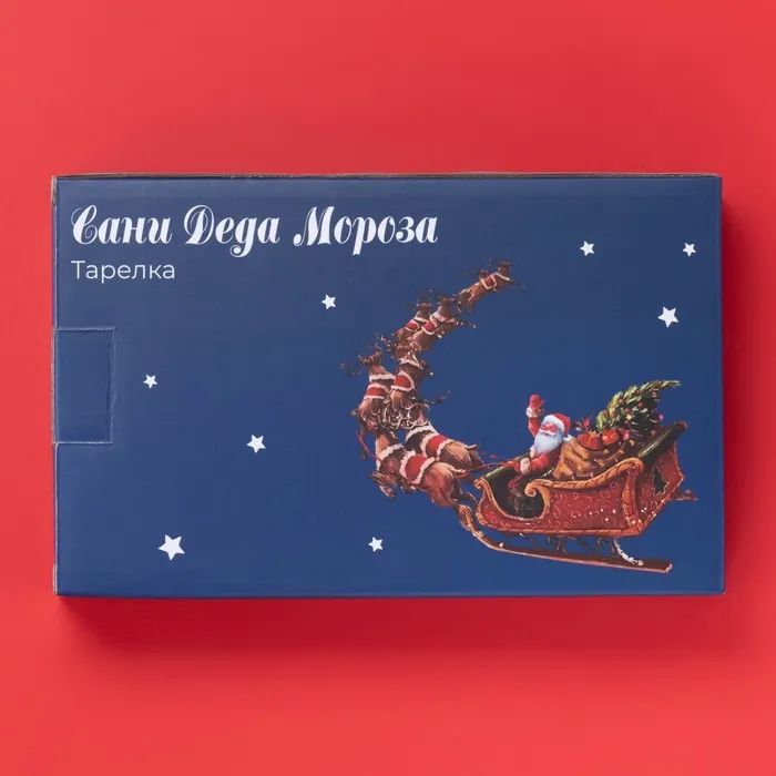 Сервировочное блюдо с санями Деда Мороза — не просто поднос, а тонкий элемент праздничной эстетики. Прямоугольная форма и белая керамика с деликатным рисунком создают лаконичный, но запоминающийся акцент на столе. Подходит для сыров, канапе, десертов или фруктов — превращает подачу в визуальный жест, который замечают без слов.