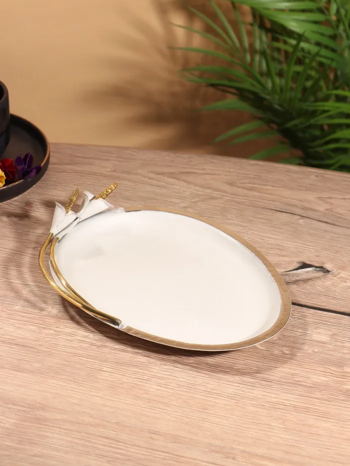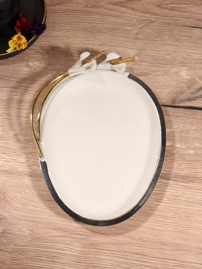 Блюдо сервировочное овальное "Белые цветы каллы" белое с золотом, нерж. сталь 24х17,5х4 см 1043955 — Характеристики