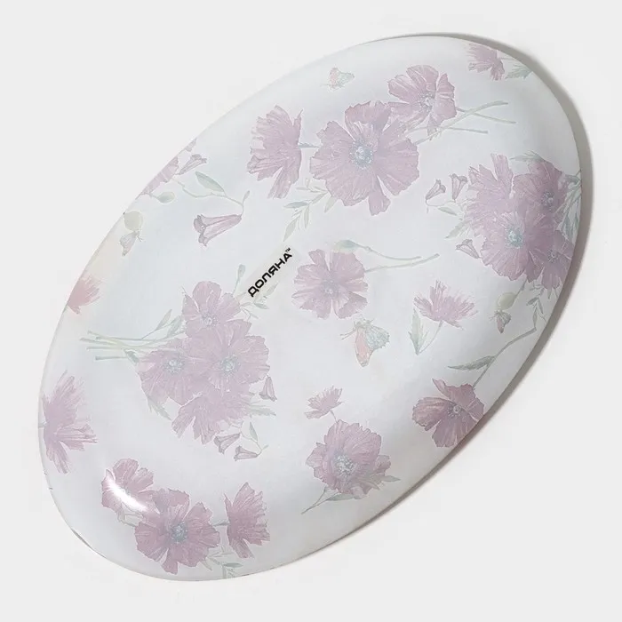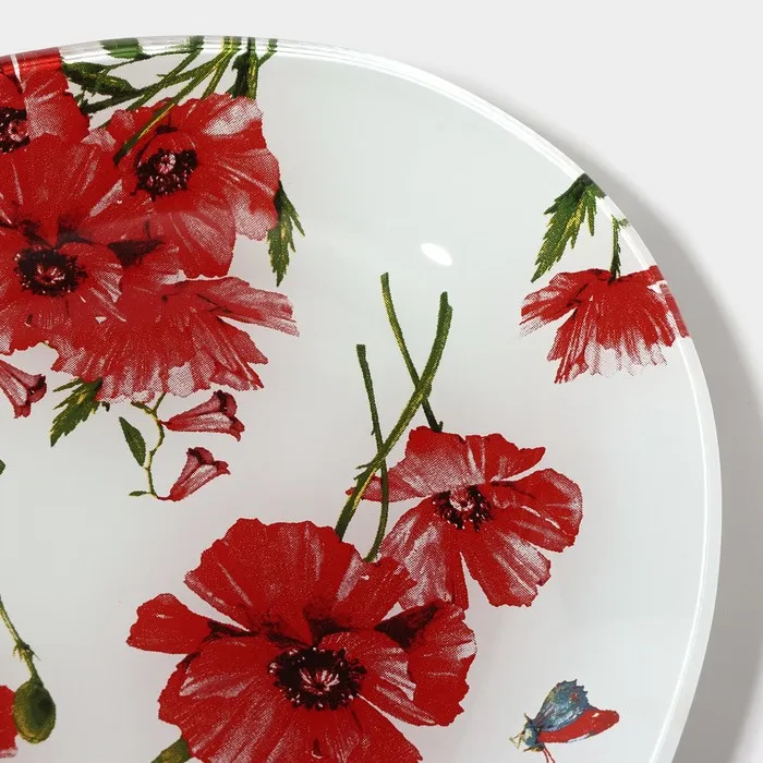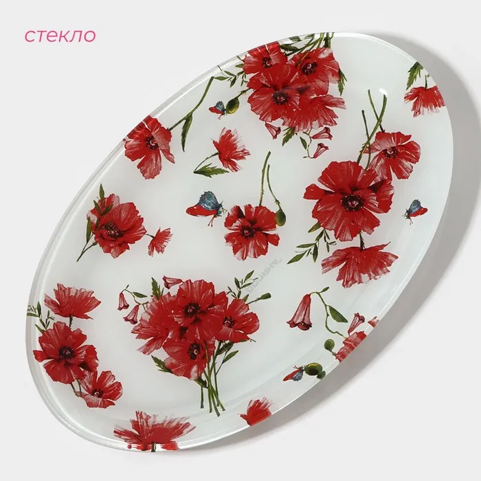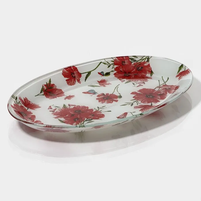 Блюдо сервировочное стеклянное Доляна «Красные маки», овальное, 24,5×15×1,7 см — Характеристики