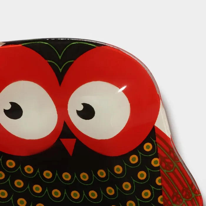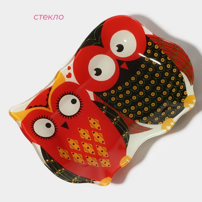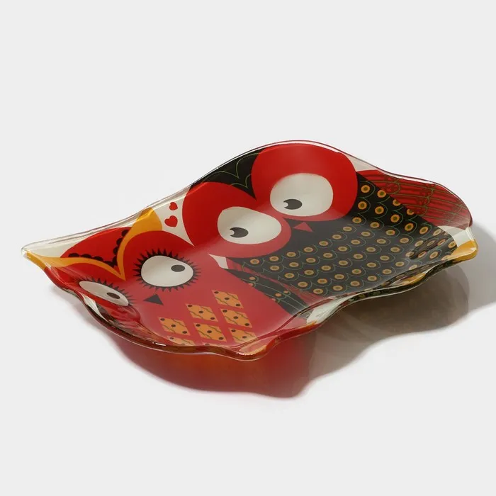 Блюдо сервировочное стеклянное Доляна «Задумчивые совы», 18×13.1×1.9 см, красный — Характеристики