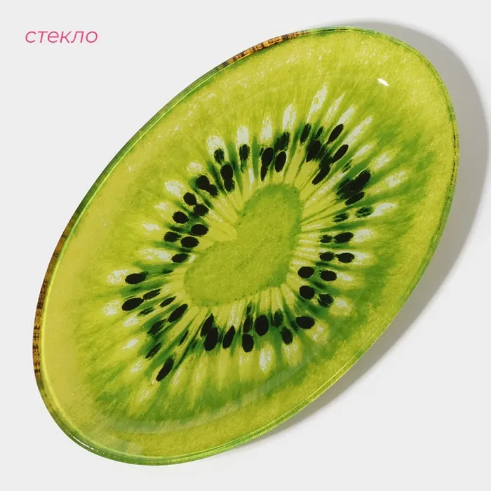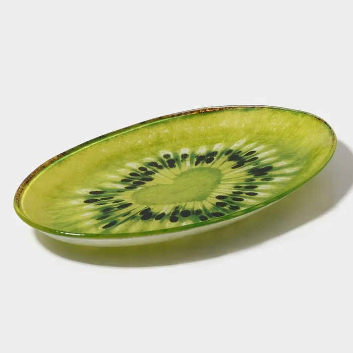 Блюдо сервировочное стеклянное овальное Доляна «Романтичный киви», 24.5×15 см, зелёное — Характеристики