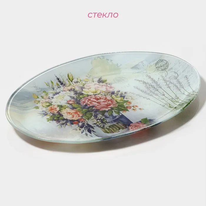 Блюдо сервировочное стеклянное овальное Доляна «Весенний роман», 29.5×20.3×2.1 см — Характеристики