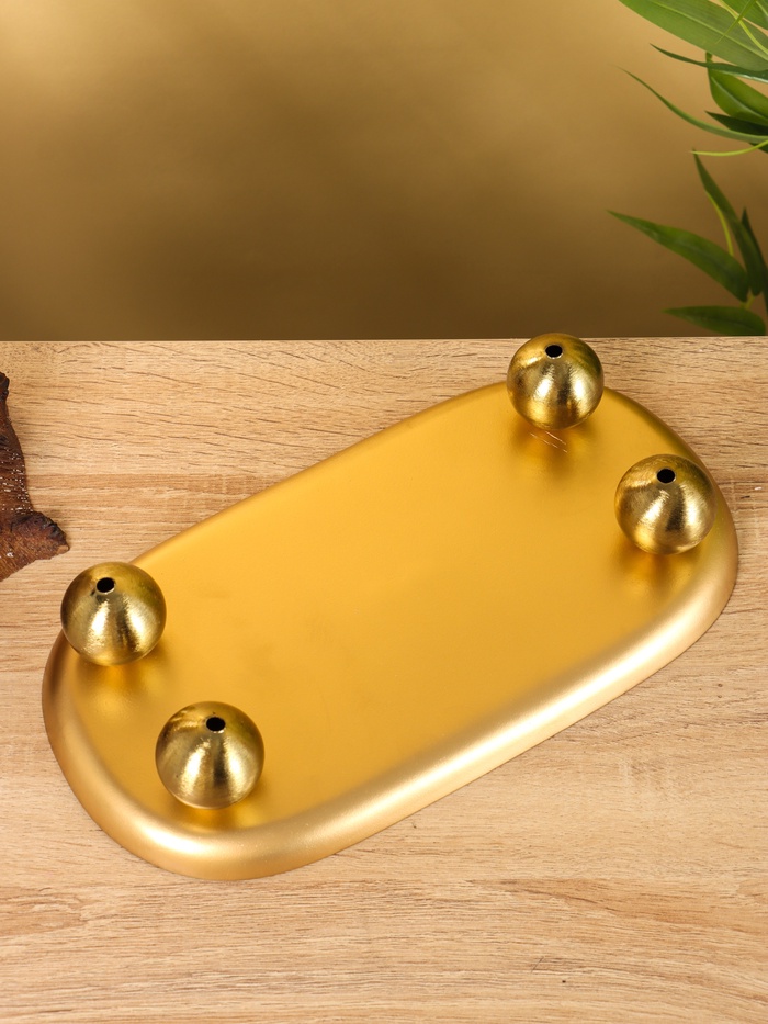 Блюдо сервировочное текстурное на золотых ножках сферах «Песок», 29×15.5×7 +/- 0.5 см — Характеристики