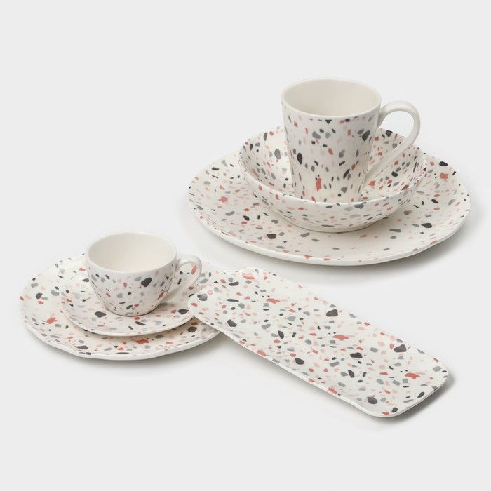 Набор блюд фарфоровых сервировочных Magistro Terazzo состоит из двух предметов. Изделия выполнены из высококачественного фарфора в серии посуды Terazzo. Они подходят для сервировки закусок, основных блюд и десертов. Можно мыть в посудомоечной машине и использовать в микроволновой печи.