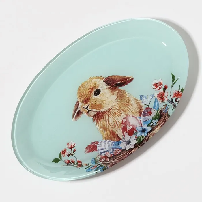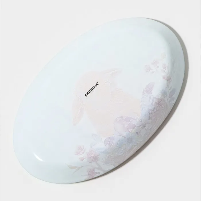 - Эстетичный внешний вид: овальное блюдо с изображением кролика выглядит стильно и привлекательно, оно станет украшением любого стола.
