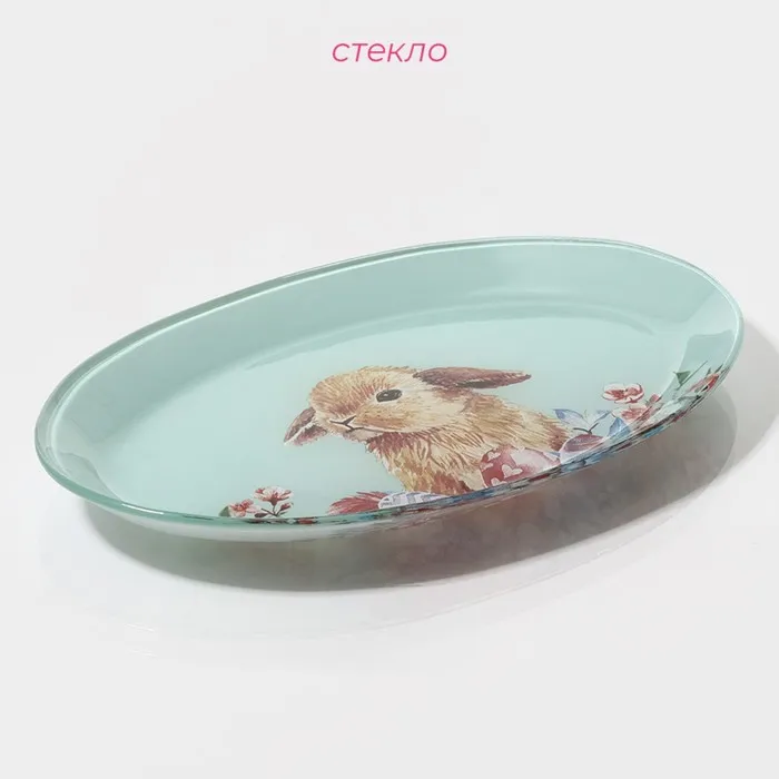 Блюдо стеклянное овальное Доляна «Кролик», овальное, 24,5×15 см — Характеристики