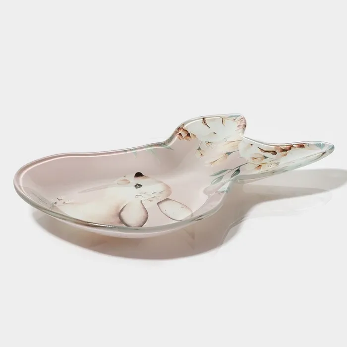 Блюдо стеклянное сервировочное Доляна «Кролик», 21×13.5×1.8 см, розовый — Характеристики