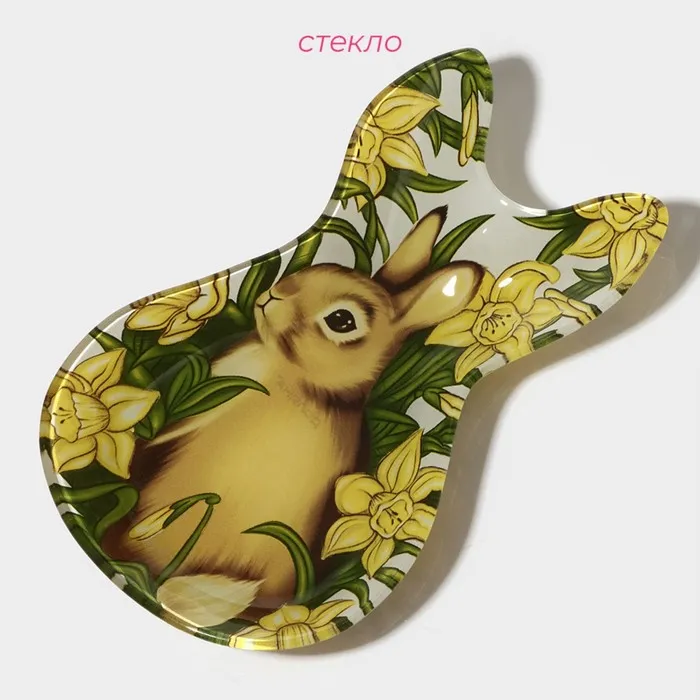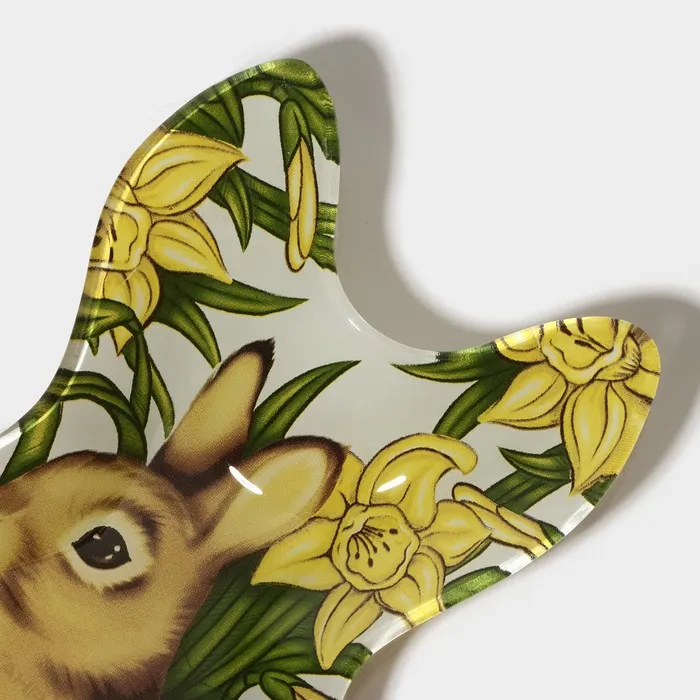 Блюдо стеклянное сервировочное Доляна «Кролик в цветах», 21×13.5×1.8 см — Характеристики
