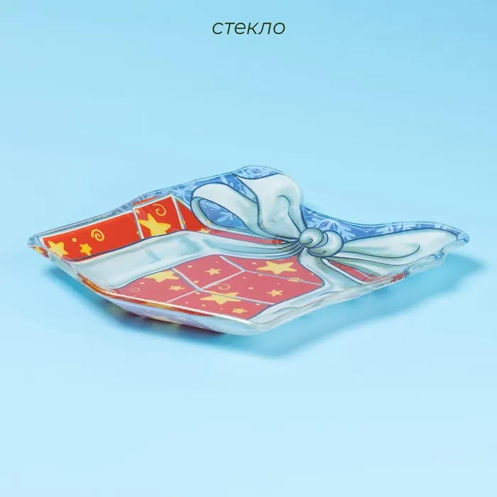 Блюдо стеклянное сервировочное Доляна «Подарок. С Новым годом» 15,1×17,3 см — Характеристики