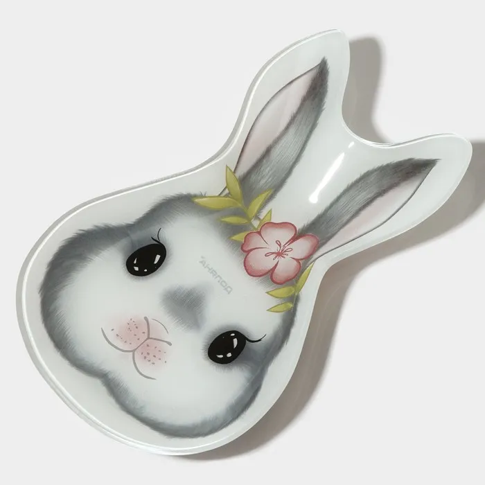 Блюдо стеклянное сервировочное Доляна «Цветочный кролик», 21×13,5×1,8 см — Характеристики