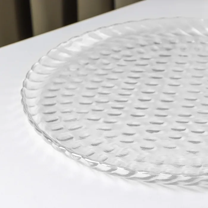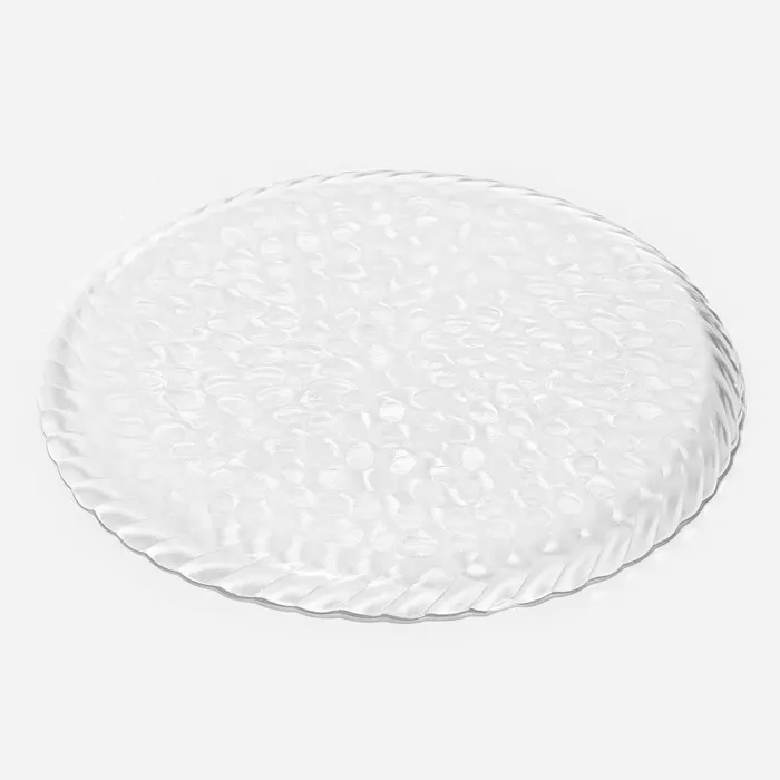 Красивая стеклянная тарелка превратит простой прием пищи в изысканную трапезу. Плоская тарелка предназначена для вторых блюд: мяса, рыбы, птицы, а также различных гарниров. Подойдет для сервировки как праздничного, так и будничного стола. Её оригинальный дизайн станет украшением любой кухни. Сервировочная тарелка изготовлена из стекла - этот экологически чистый материал полностью безопасен для здоровья.